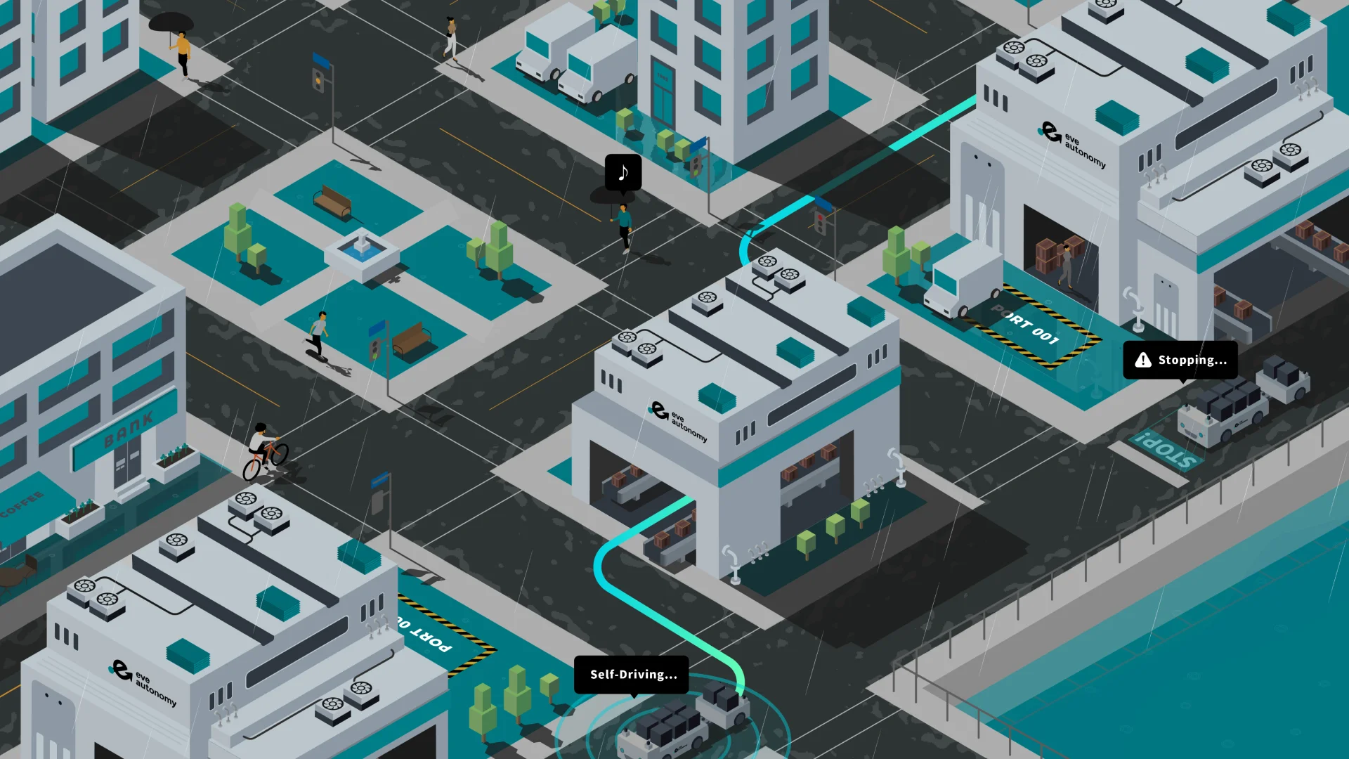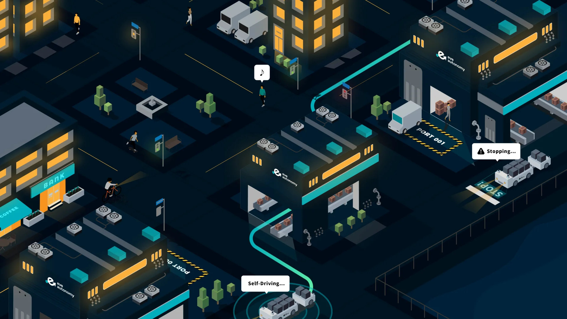 株式会社eve autonomyの自動運転モビリティの世界観を表現するイラストレーション・モーショングラフィックを担当しました。